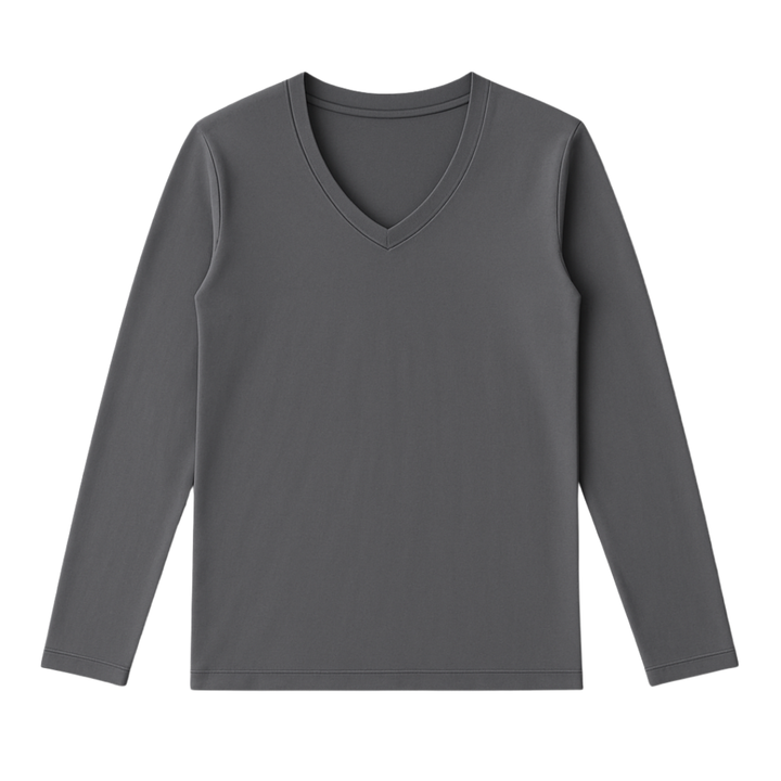 Women Dark Grey Long Sleeve V Neck T Shirt 100% Luxury Organic Cotton Pre Shrunk GOTS Certified Premium Soft Classic Fit Tee