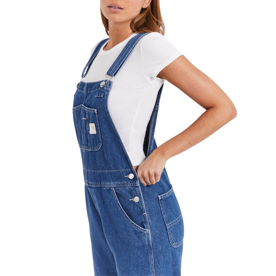 Women Denim Bib Overalls Classic Relaxed Fit Adjustable Straps Workwear Style Pocket Detail Casual Jumpsuit Anti-Bacterial