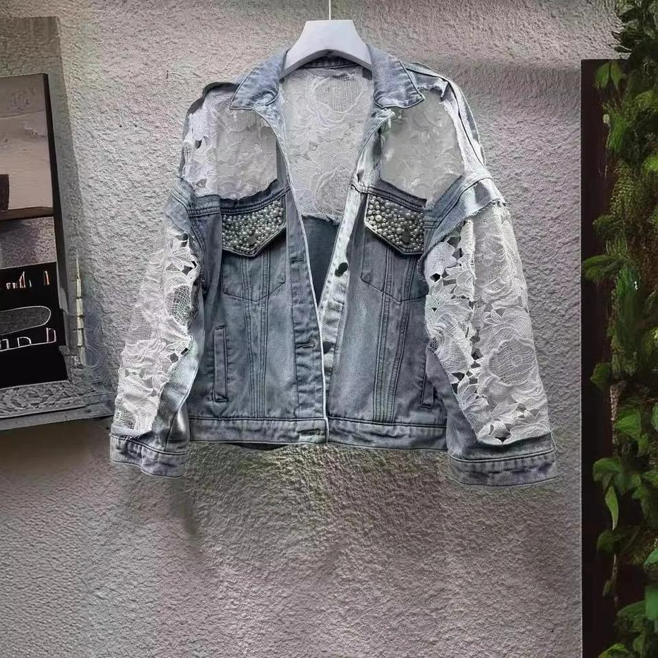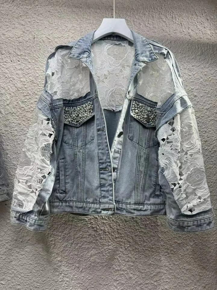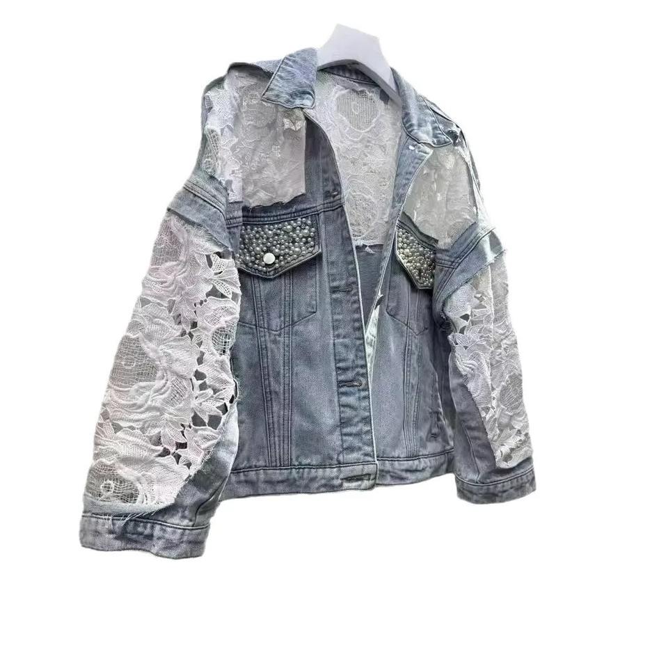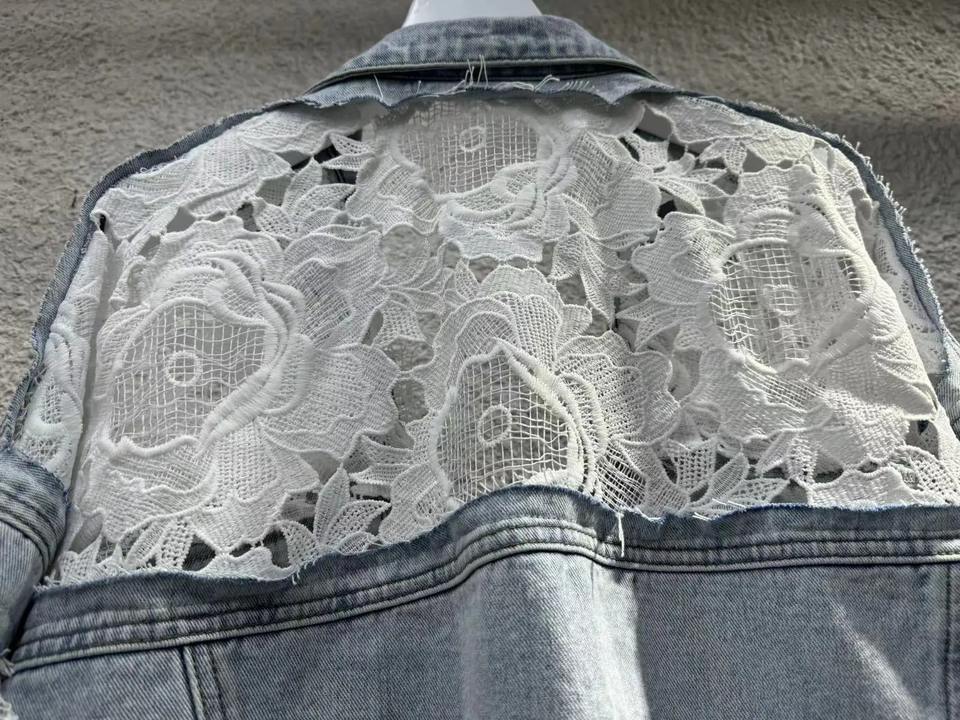 Women Printed Breathable Eco-Friendly Denim Jacket Mandarin Collar Cowboy Cardigan Winter
