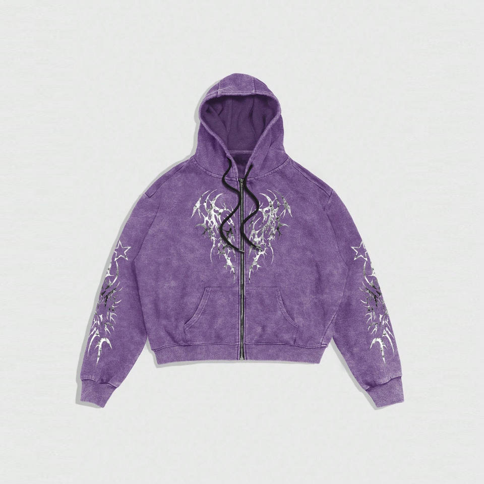 Women Distressed Embroidery Acid Wash Vintage Wash Printed Heavy Weight Drop Shoulder 100% Cotton Fleece Hoodies