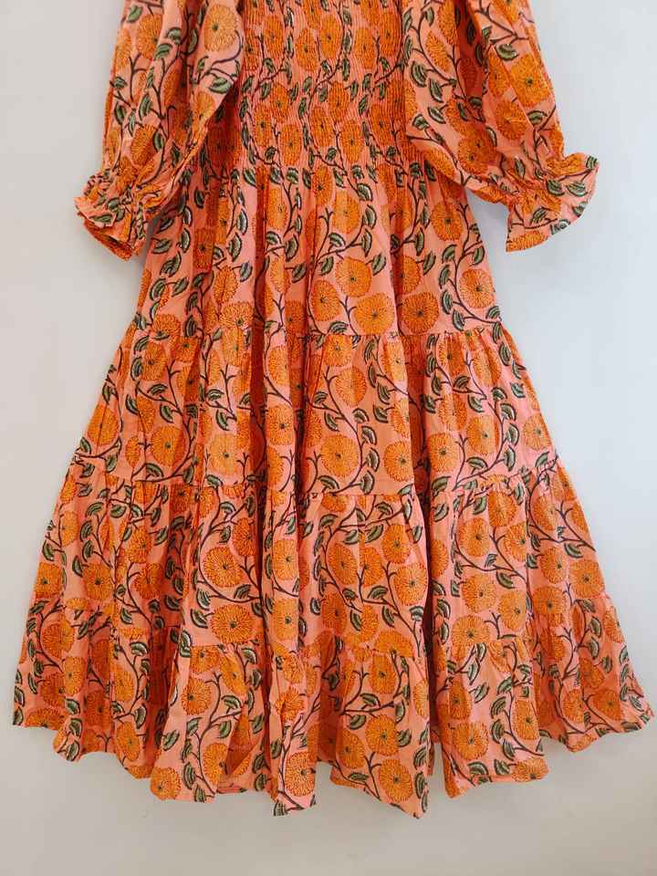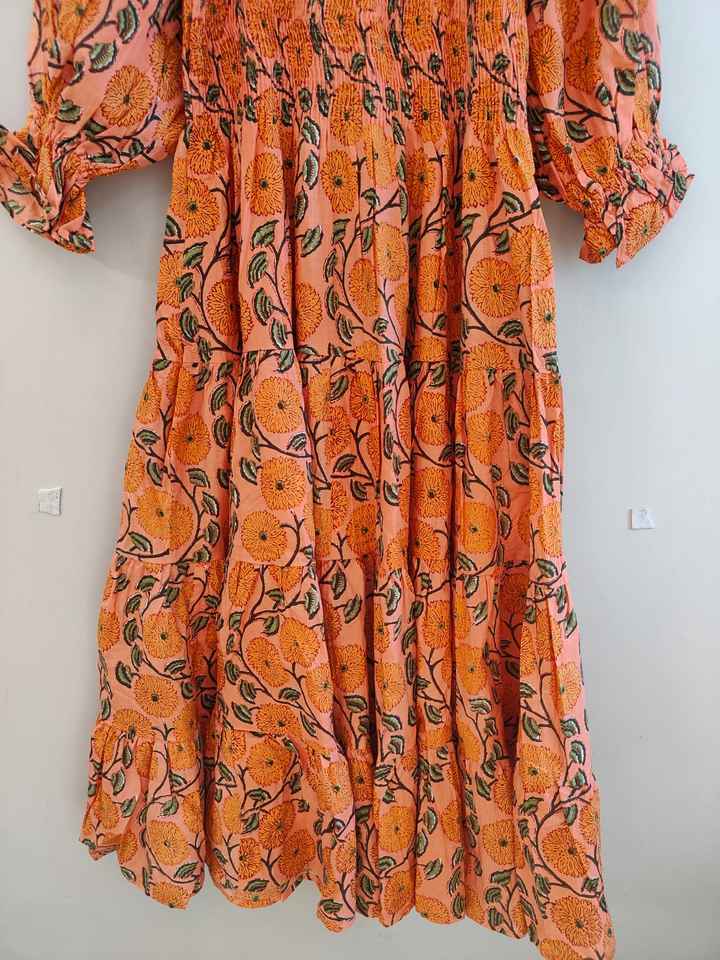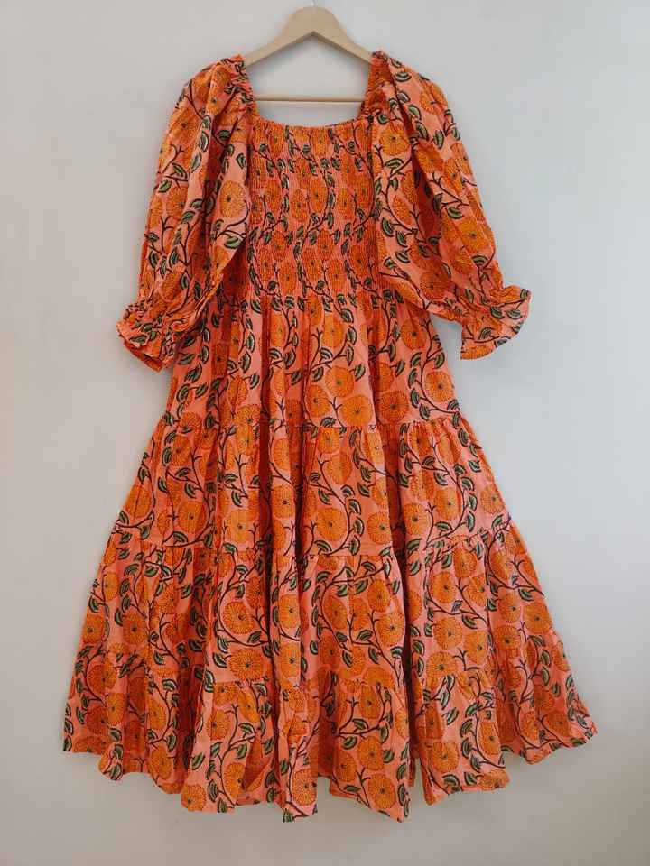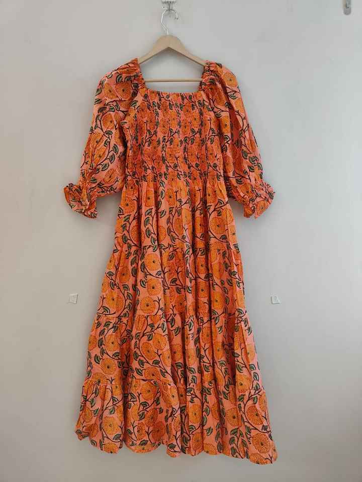 Women Dress Cotton Handblock Print Dress Women wear long maxi dress Square Neckline with Smocking Maxi Dress Cotton summer dress