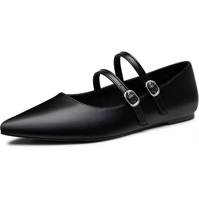 Women Dressy Adjustable Strap Pu Leather Ladies Casual Shoes Slip on Pointed Toe Mary Jane Ballet Flats Shoes