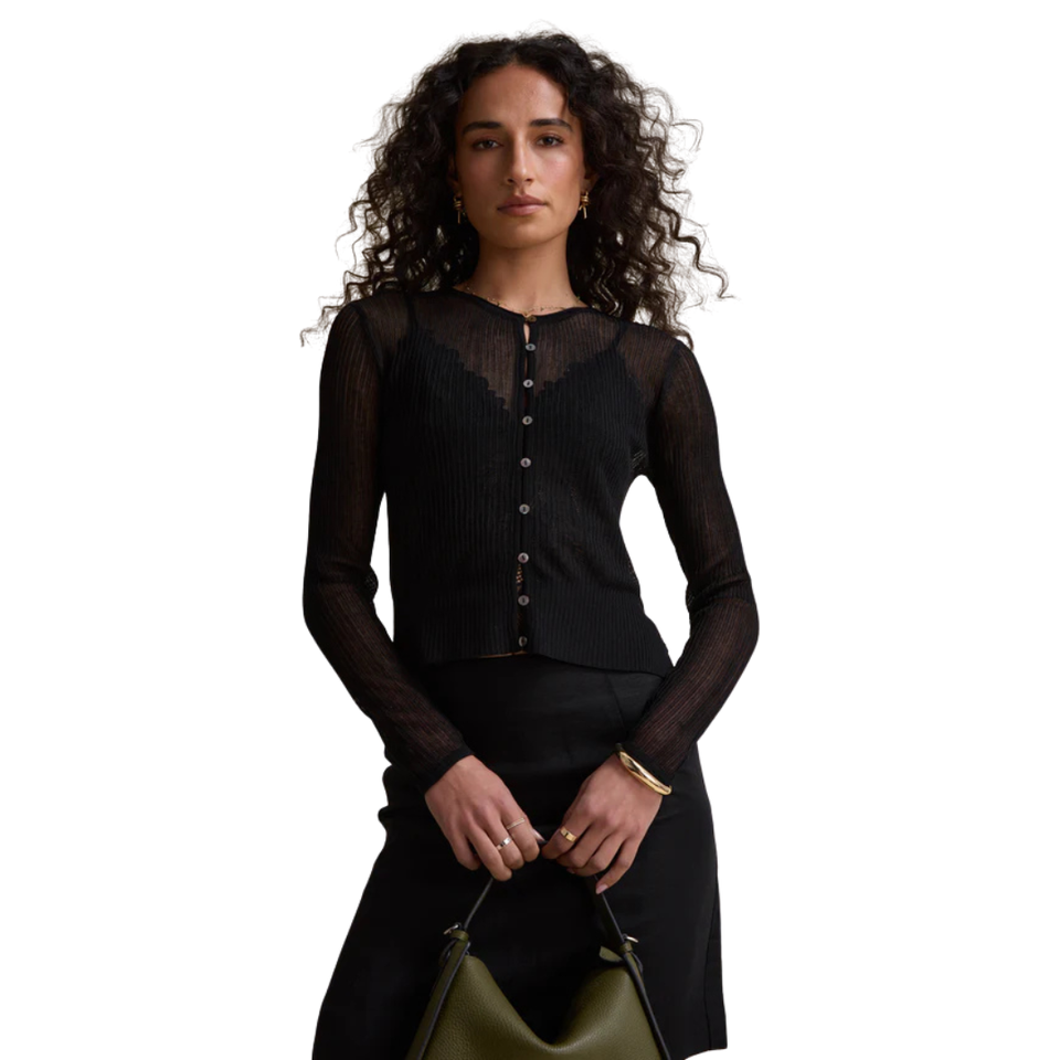 Women Eden Sheer Knit Cardigan Lightweight Button Front Semi Transparent Long Sleeve Summer Layer Top Wear Style Fit Up