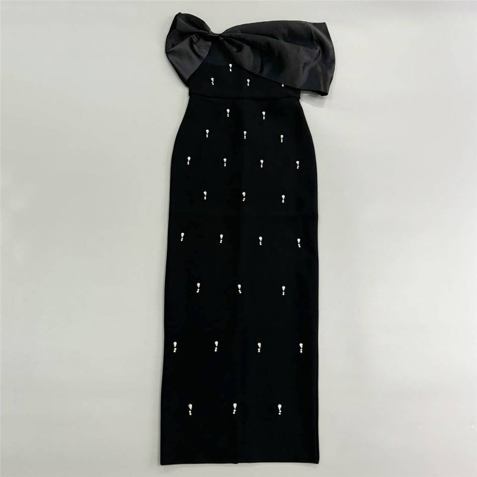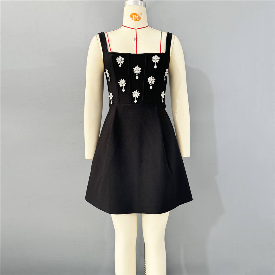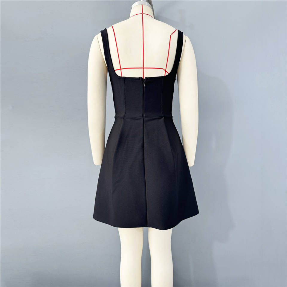 Women Elegant Halter Neck Long Sleeve Midi Length Spaghetti Strap Contrast Lace Satin Fabric Natural Waist Solid Color Dress