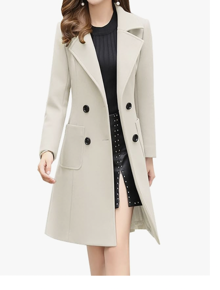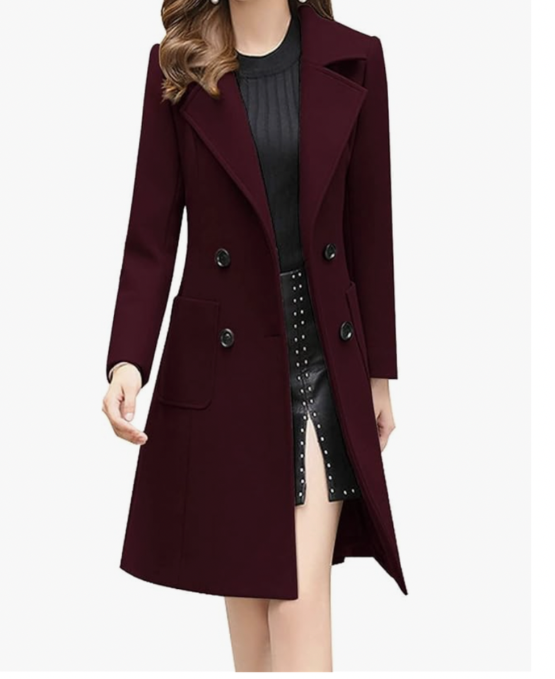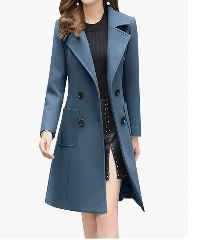 Women Elegant Notched Collar Double Breasted Wool Blend Over Coat Bangladesh