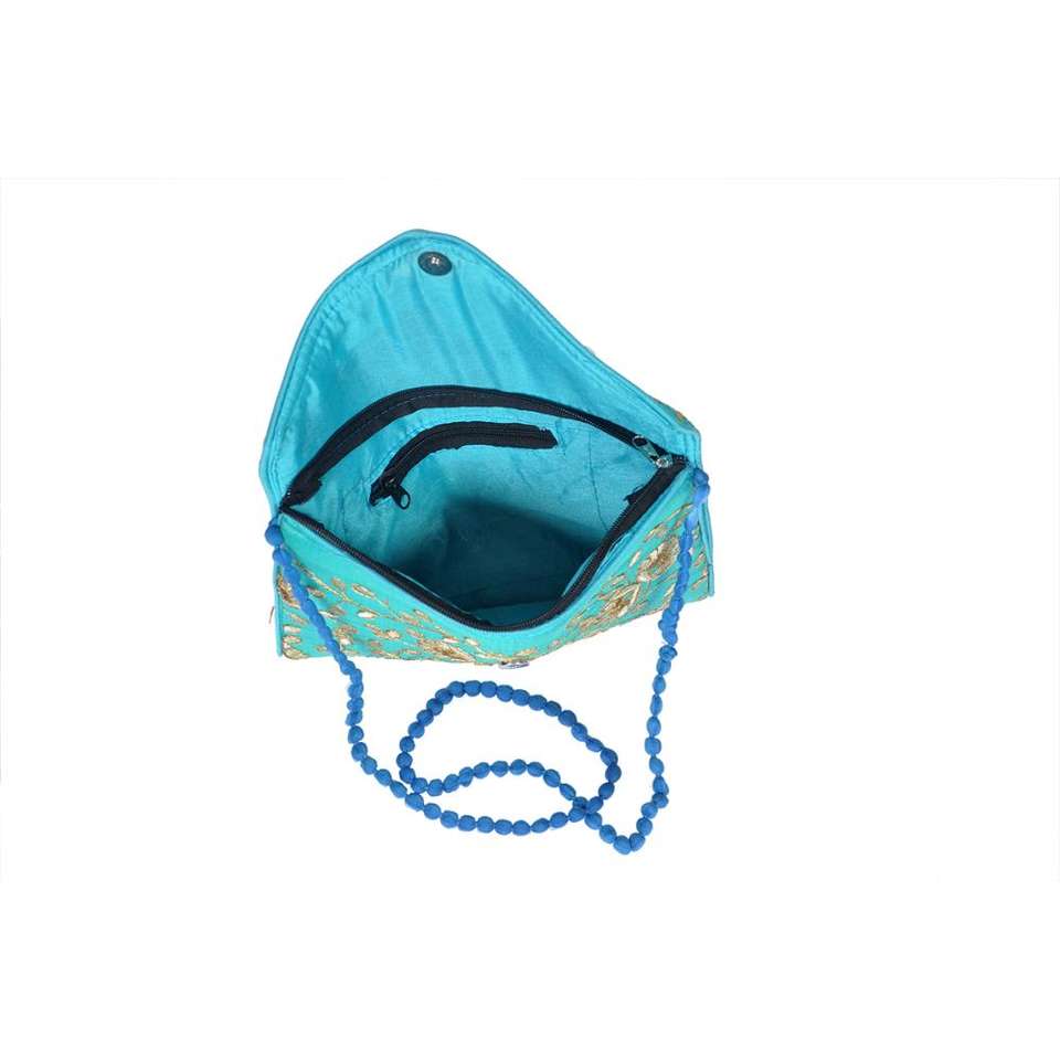 Women Embroidered Fabric Geometric Pattern Zipper Closure Fold Over Clutch/Sling Bag