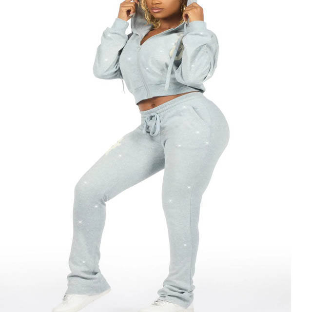 Women Extra High Waist Slim Fit Gym Tracksuit Zipper Jacket Pants Set Stretch Flexible Workout Outfit