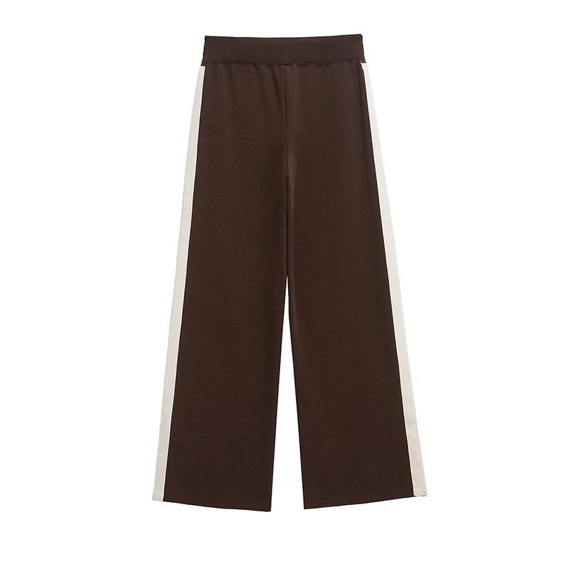 Women Fashion 2 Piece Set Brown Pullover Sweatshirts & Vintage High Elastic Waist Trousers Female Pants Sets