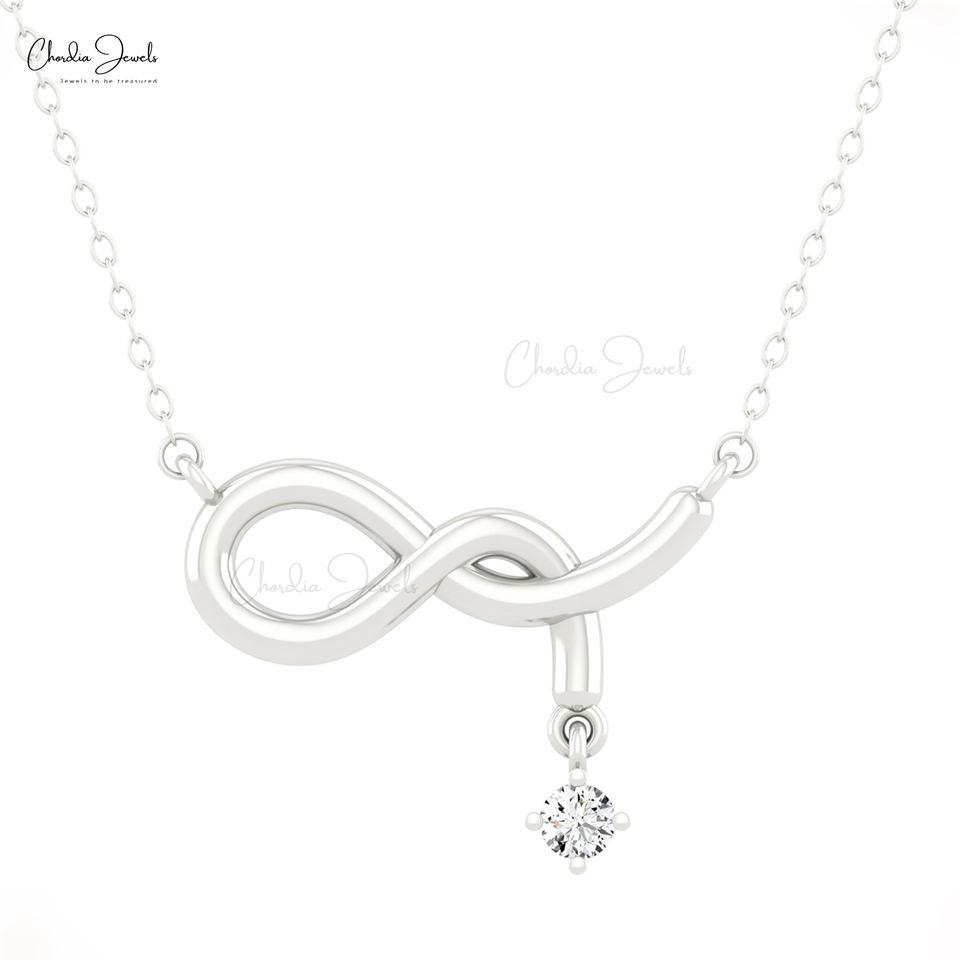 Women Fashion 2024 Infinity Necklace Solid 14k Gold White Diamond Necklace 3mm Round Diamond Minimalist Necklace at Best Price