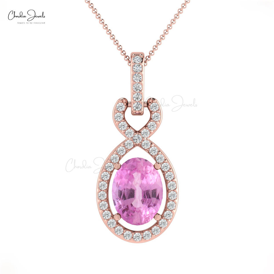 Women Fashion 2025 Natural Ruby 7x5mm Oval Cut Gemstone Bail Pendant 14k White Gold Diamond Halo Pendant Wholesale Distributors