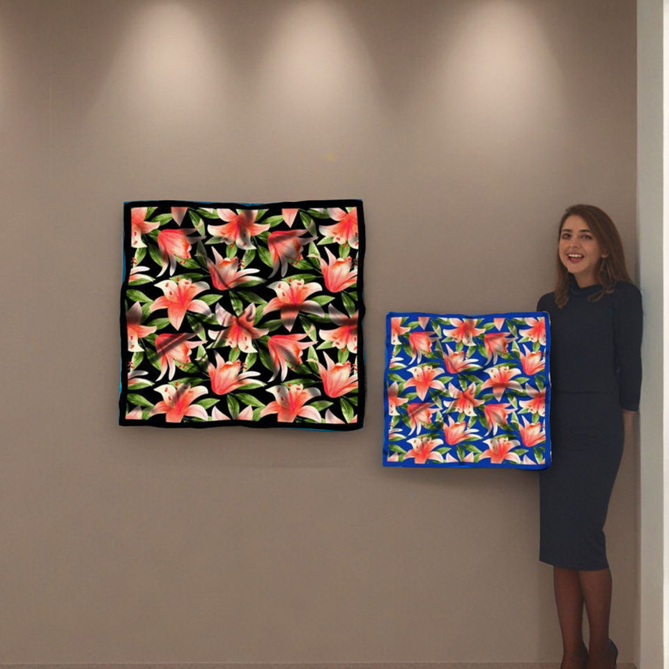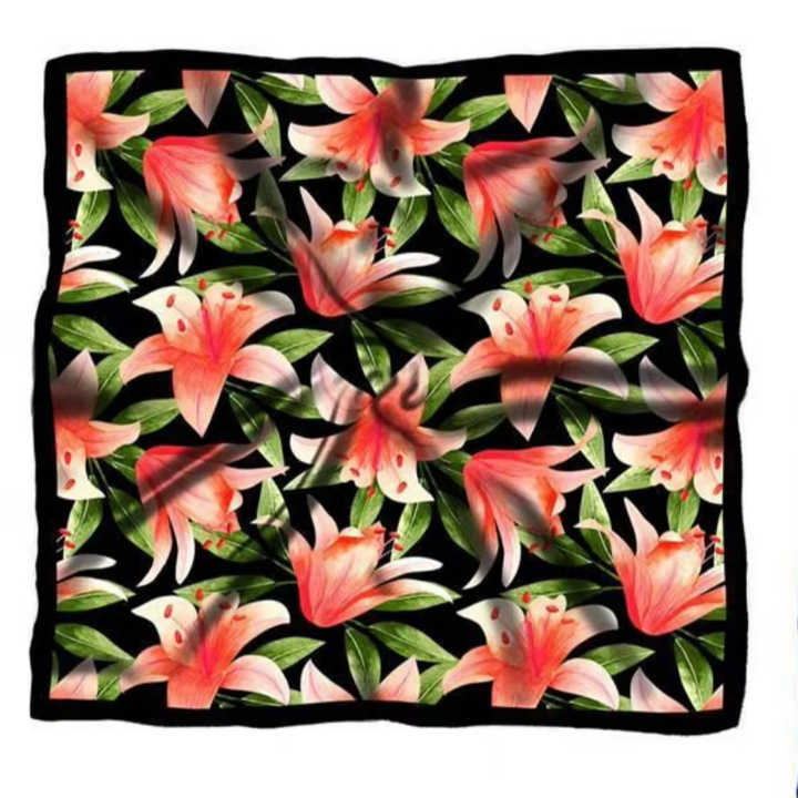 Women Fashion Accessories Geometric Floral Print 90x90cm Satin Square Silk Scarf Printed Head Wrap Neck Scarf for Outdoor Use