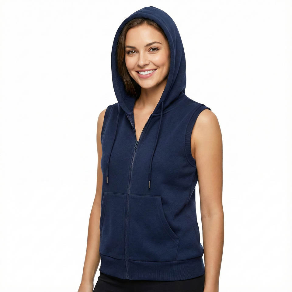 Women Fashion Custom Streetwear Sleeveless Zip Hoodies Vests Heavy Cotton Regular Fit Running Workout Wholesale Price Hoodies