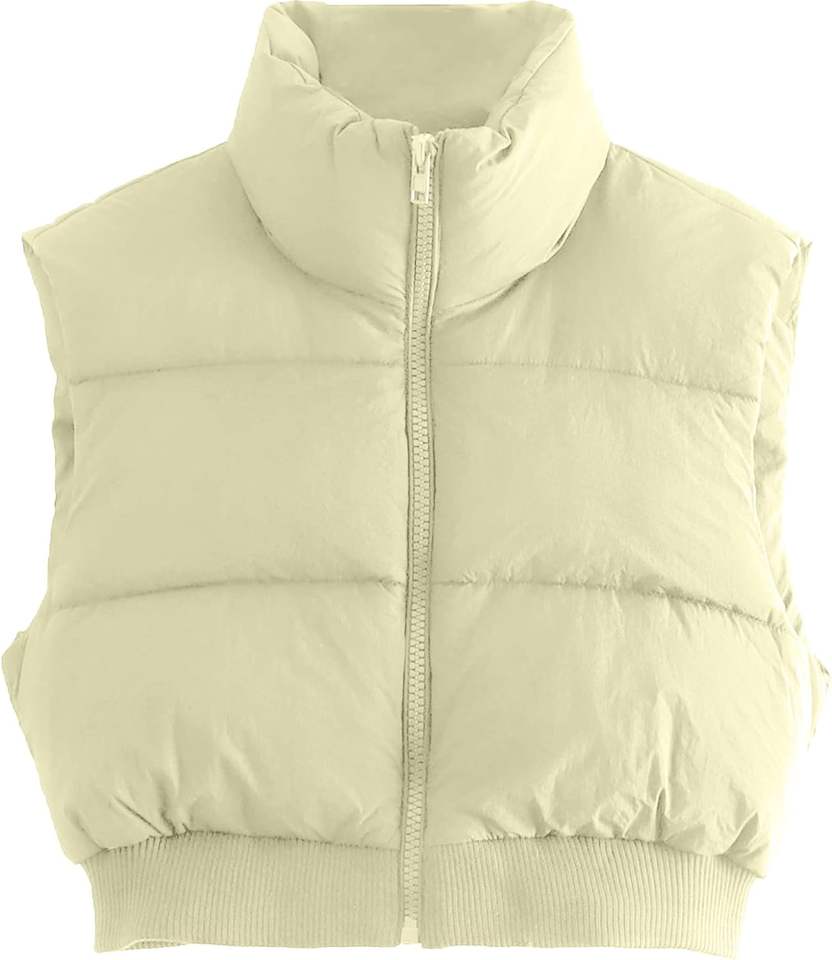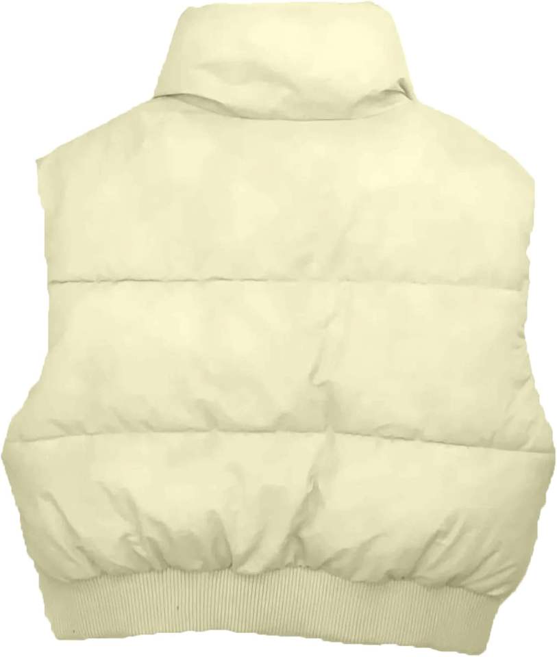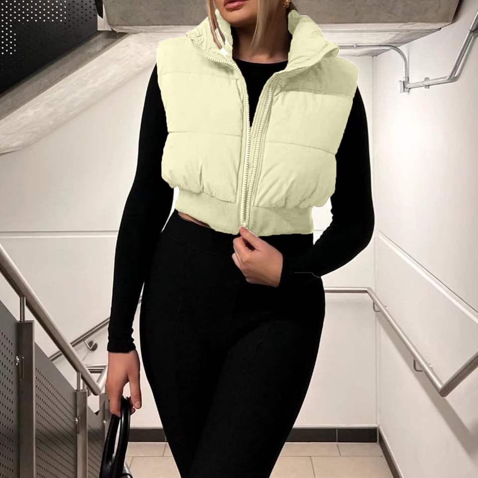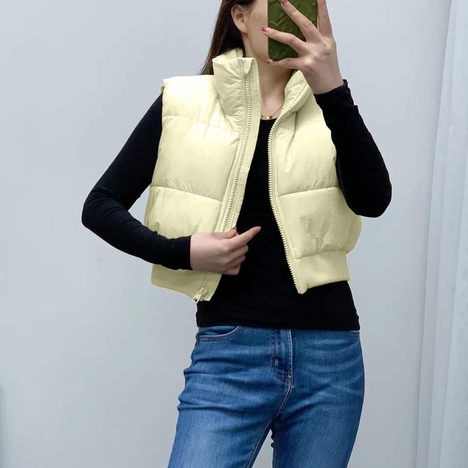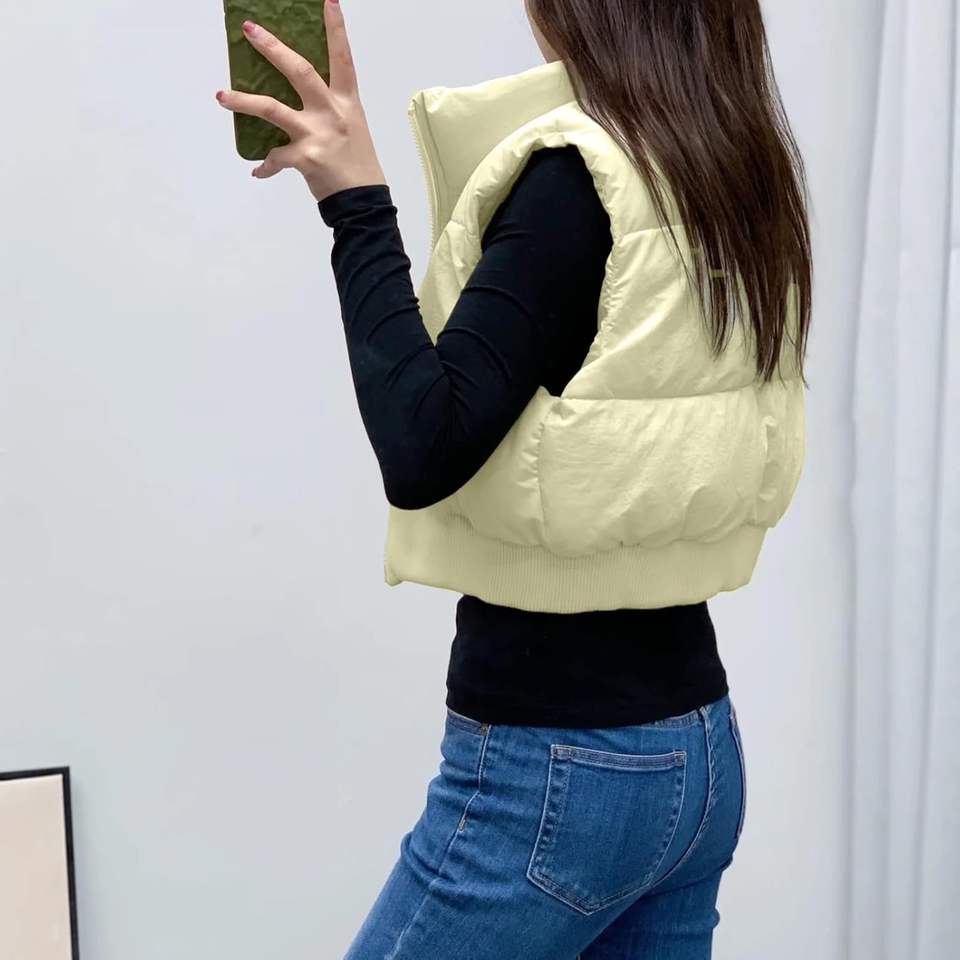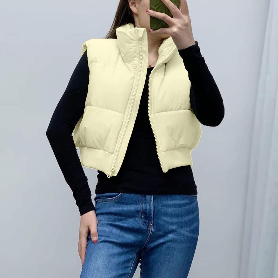Women Fashion High Neck Zipper Cropped Puffer Vest Jacket Coat Polyester cropped puffer jacket sleeveless design stand collar