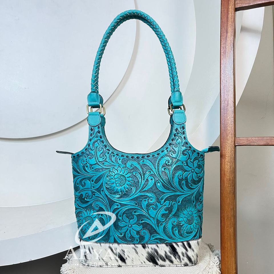 Hand Tooled Cowhide Leather Tote Bag