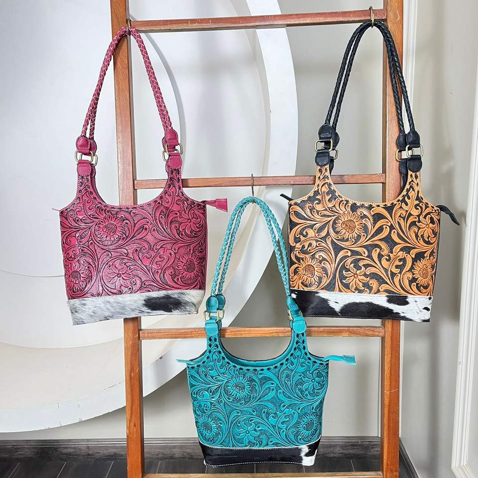 Women Fashion High Quality Hand Tooled Leather & Cowhide Shoulder Tote Bag Wholesale Designer Conceal Carry Stylish Lady Handbag