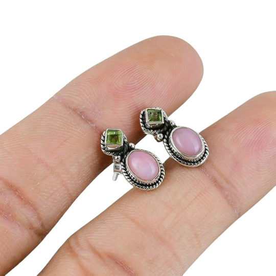 Women Fashion Jewelry Rose Quartz Gemstone Stud Earrings 925 Solid Sterling Silver Handmade Women Girls Stud Silver Earrings