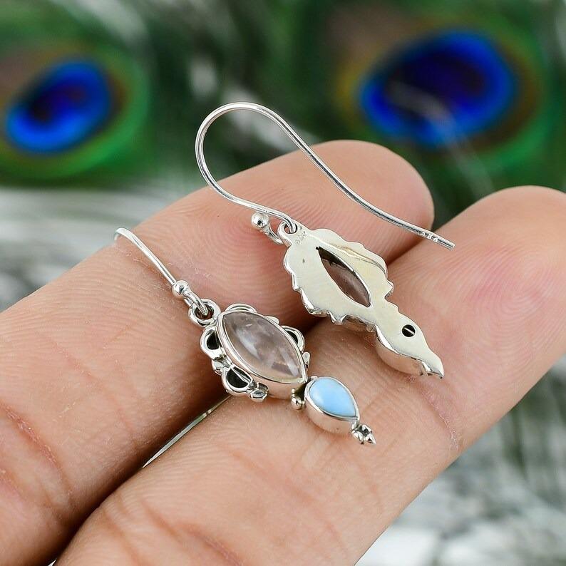 Women Fashion Jewelry Rose Quartz Gemstone Earrings 925 Solid Sterling Silver Earrings for Women & Girls Dangle Silver Earrings