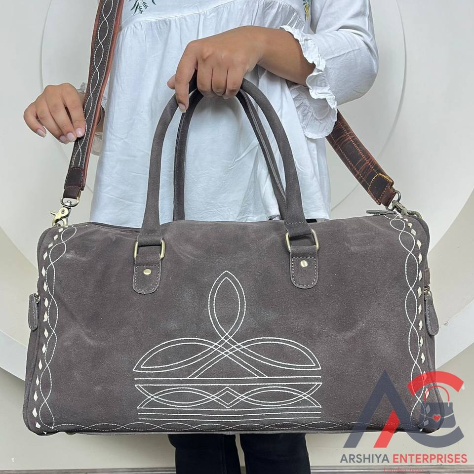 Product name:Boot Stitch Suede Leather Duffel Bag