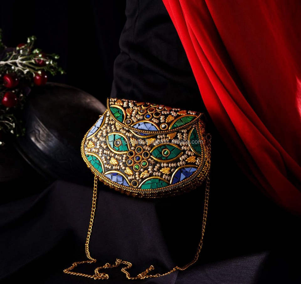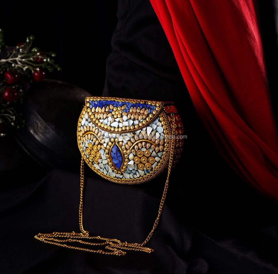 Women Fashion Mosaic Clutch Multicolored Indian Handbags Meal Bags Gifted for Her Manufacturer by LUXURY CRAFTS