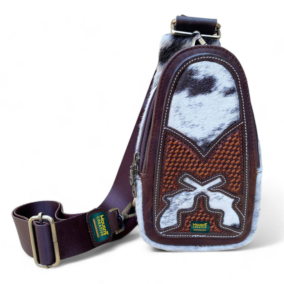 Natural Cow Hair on Leather Sling Chest Pack Western Crossbody Bag