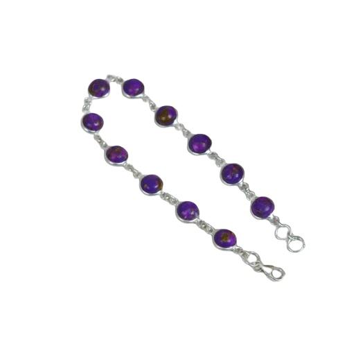 Women Fashion Purple Copper Turquoise Bracelet 925 Sterling Silver Round Shape Gemstone Jewelry Adjustable Bracelet