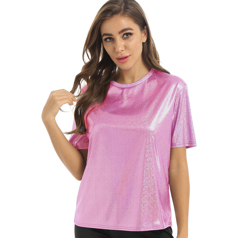 Women Fashion Shining Tops/Blouse Casual Short Sleeve Office Lady Shirt Print Shirts Women's Top Blouses & Shirts Party Dress