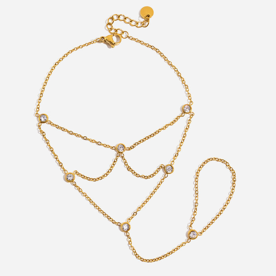 Women Fashion Zircon Bracelet Stainless Steel Jewelry Hand Finger Ring Chain Bracelet With Finger