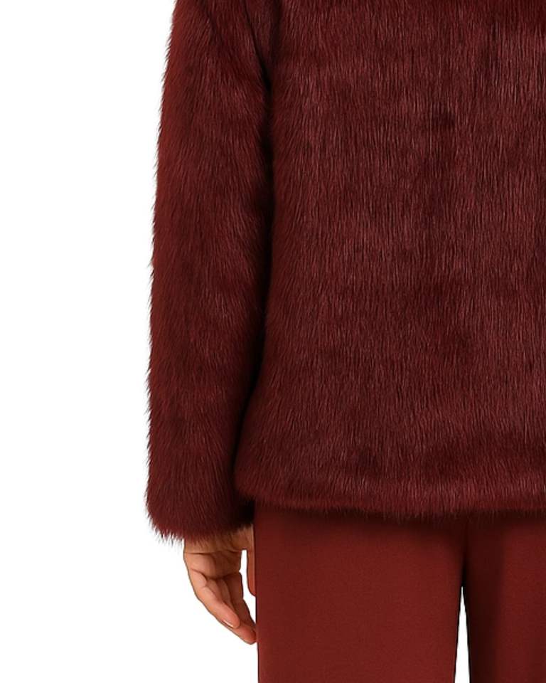 Women Faux Fur Winter Coat In Burgundy Maroon Colour With Soft Plush Material Warm Thick Jacket Stylish Outerwear For Ladies