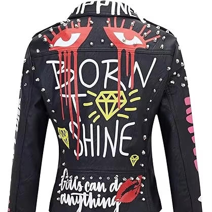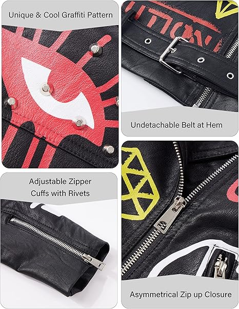 Women Faux Leather Jacket Studded Rivet Spring Fall Fashion Hip-Length Moto Biker Trendy Clothes Streetwear Belted