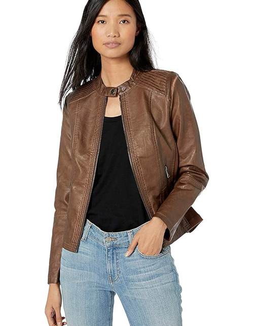 Women Faux Leather Jacket Studded Rivet Spring Fall Fashion Hip-Length Moto Biker Trendy Clothes Streetwear Belted