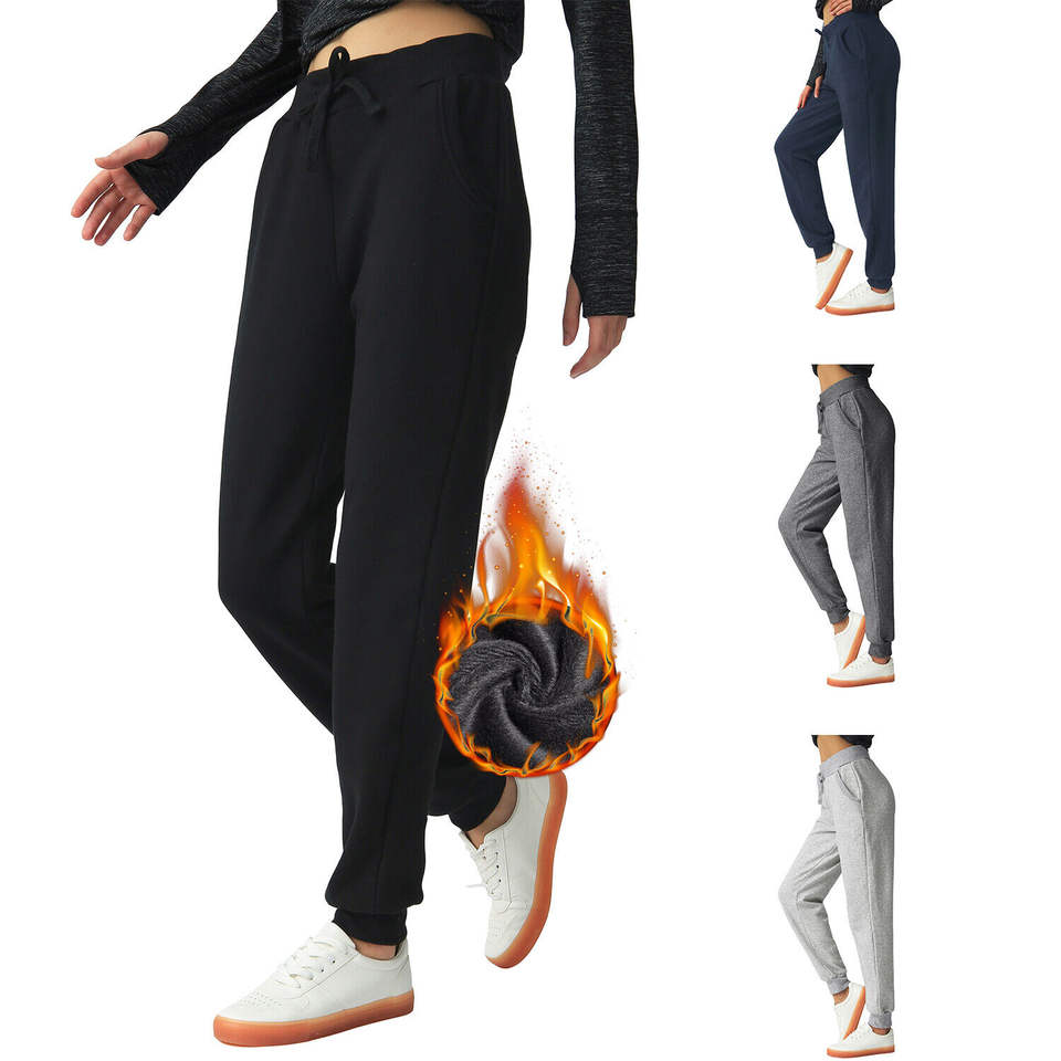 Women Fleece Lined Pants Stretch Thermal Fitness Joggers Winter Thick Sweatpants