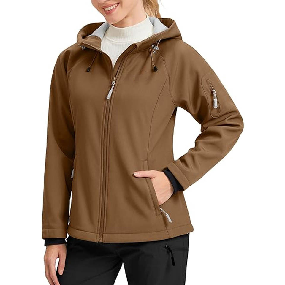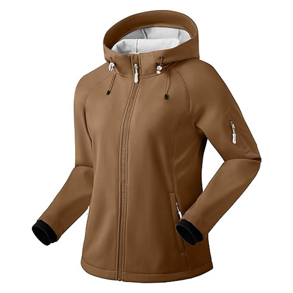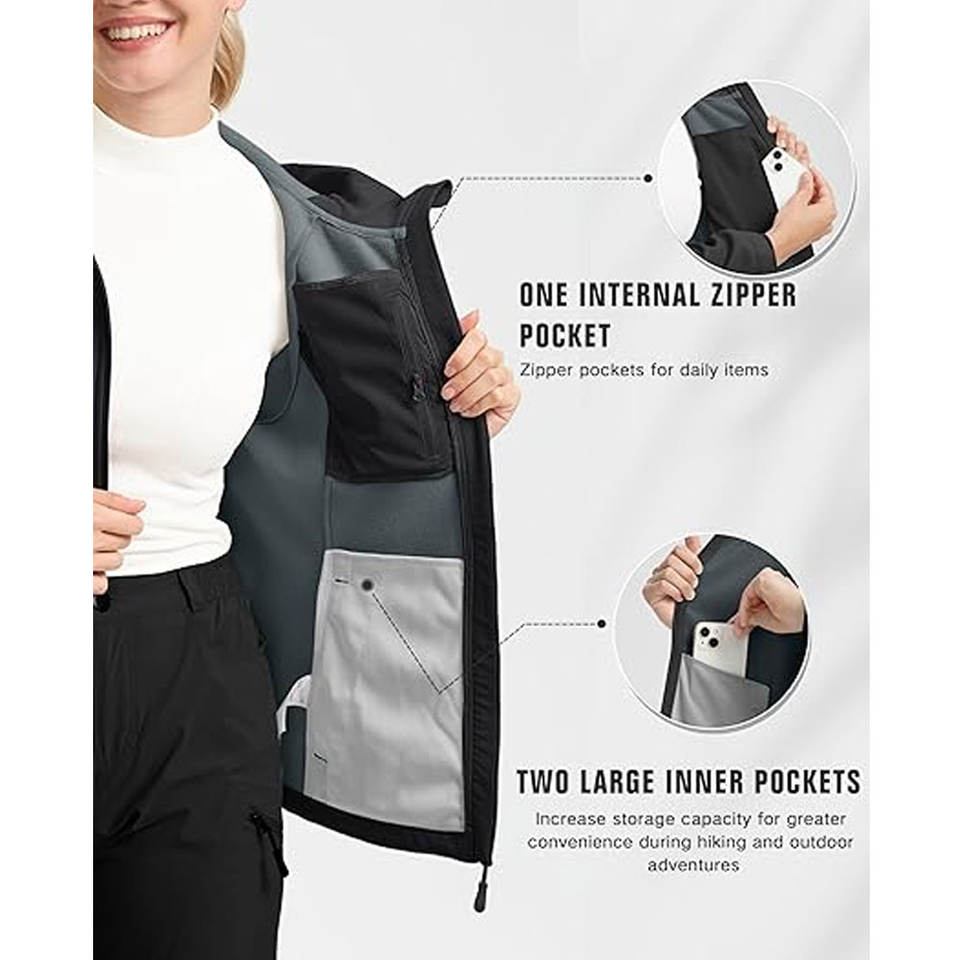 Women Fleece Lined Softshell Jacket Lightweight Windproof & Waterproof Hooded Coat for Winter Fall & Spring Outdoor Activities