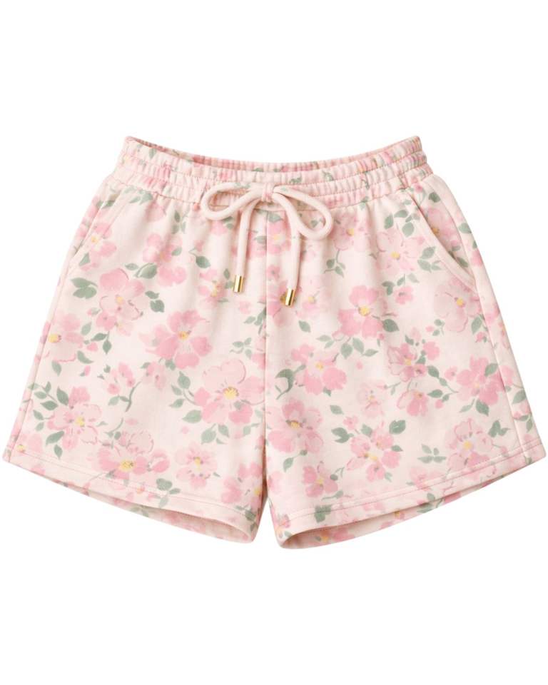 Women Floral Print Crop Tank Top And Drawstring Shorts Set Blush Pink Casual Lounge Two Piece Outfit Manufacturer Wholesale