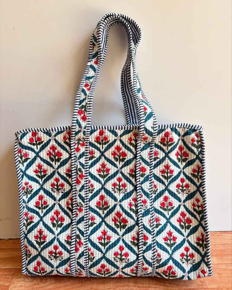 Women's Floral Quilted Cotton Tote Bag Large Carry Shopping Shoulder Bag One Shoulder Two Handles Open for Daily Wear for Summer