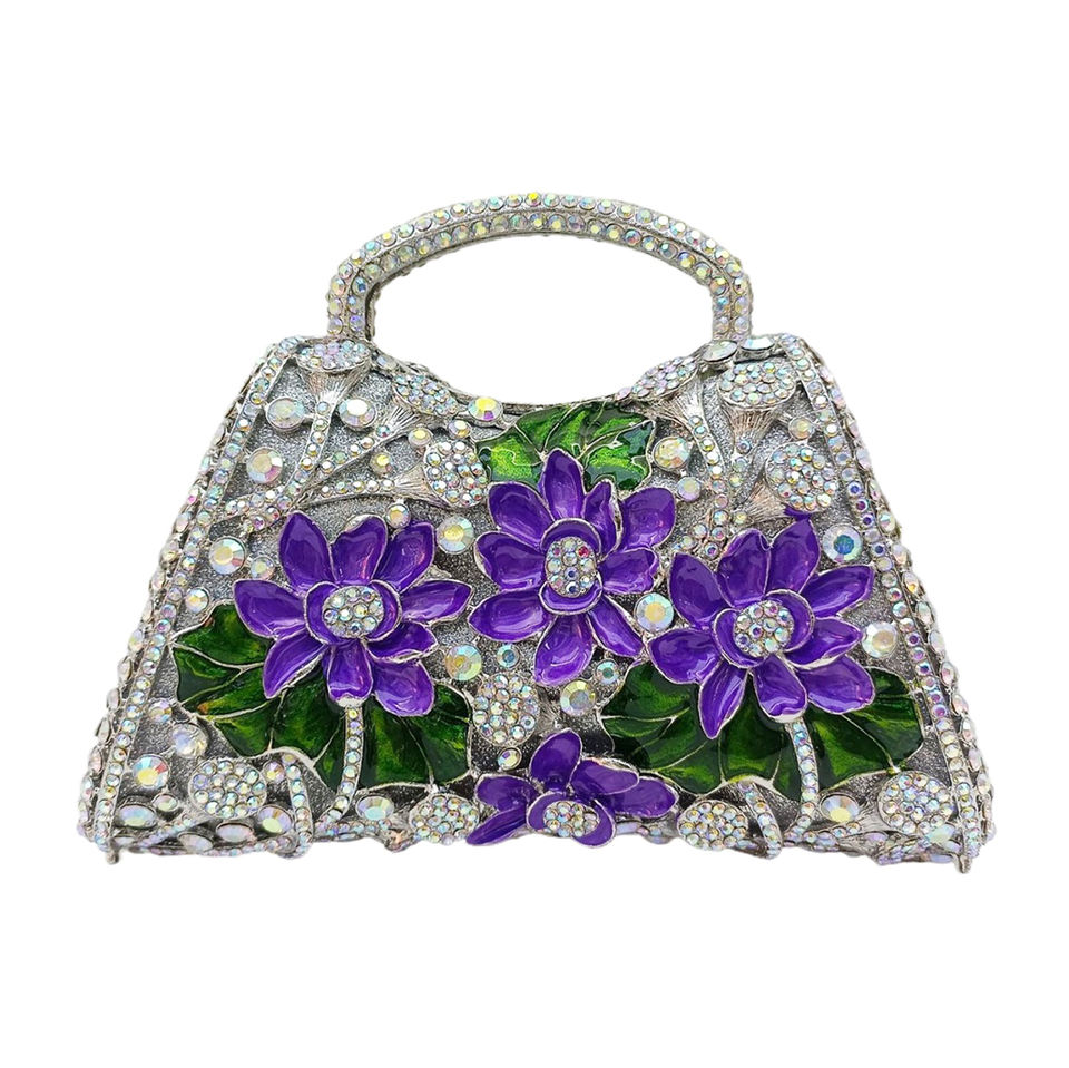 Women Floral Rhinestone Clutch Sparkling Evening Handbag Beaded Crystal Purse For Party