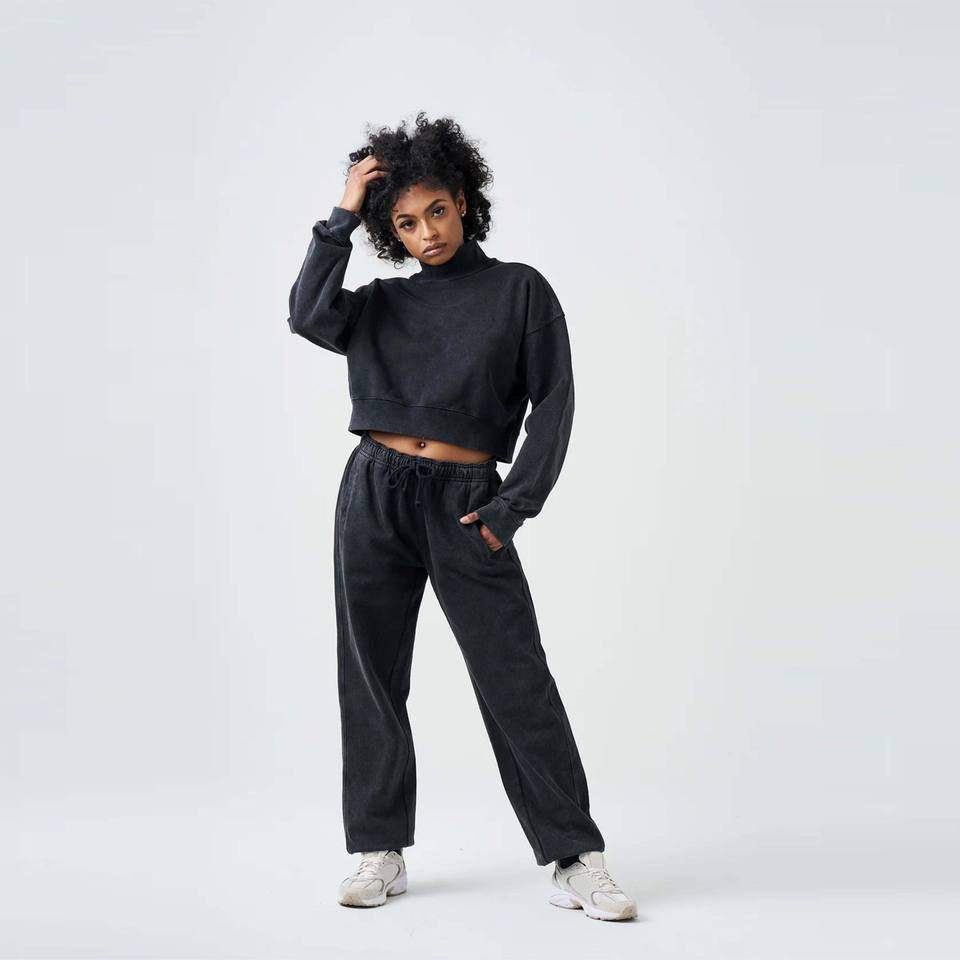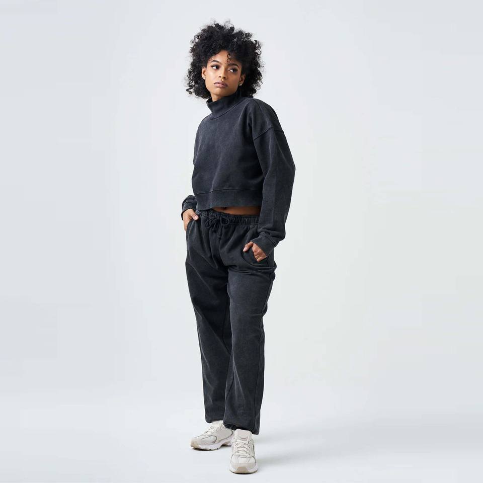 Women French Terry Mock Neck Sweatsuit - Cozy and Comfortable Two-Piece Loungewear Set Perfect for Casual Wear and Relaxation