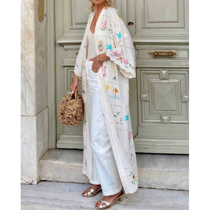 Women Full Length Kimono Elegant Flowing Open Front Outerwear Designed For Stylish Layering Comfort And Modern Fashion Use