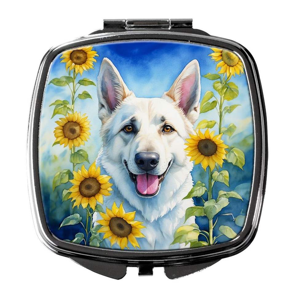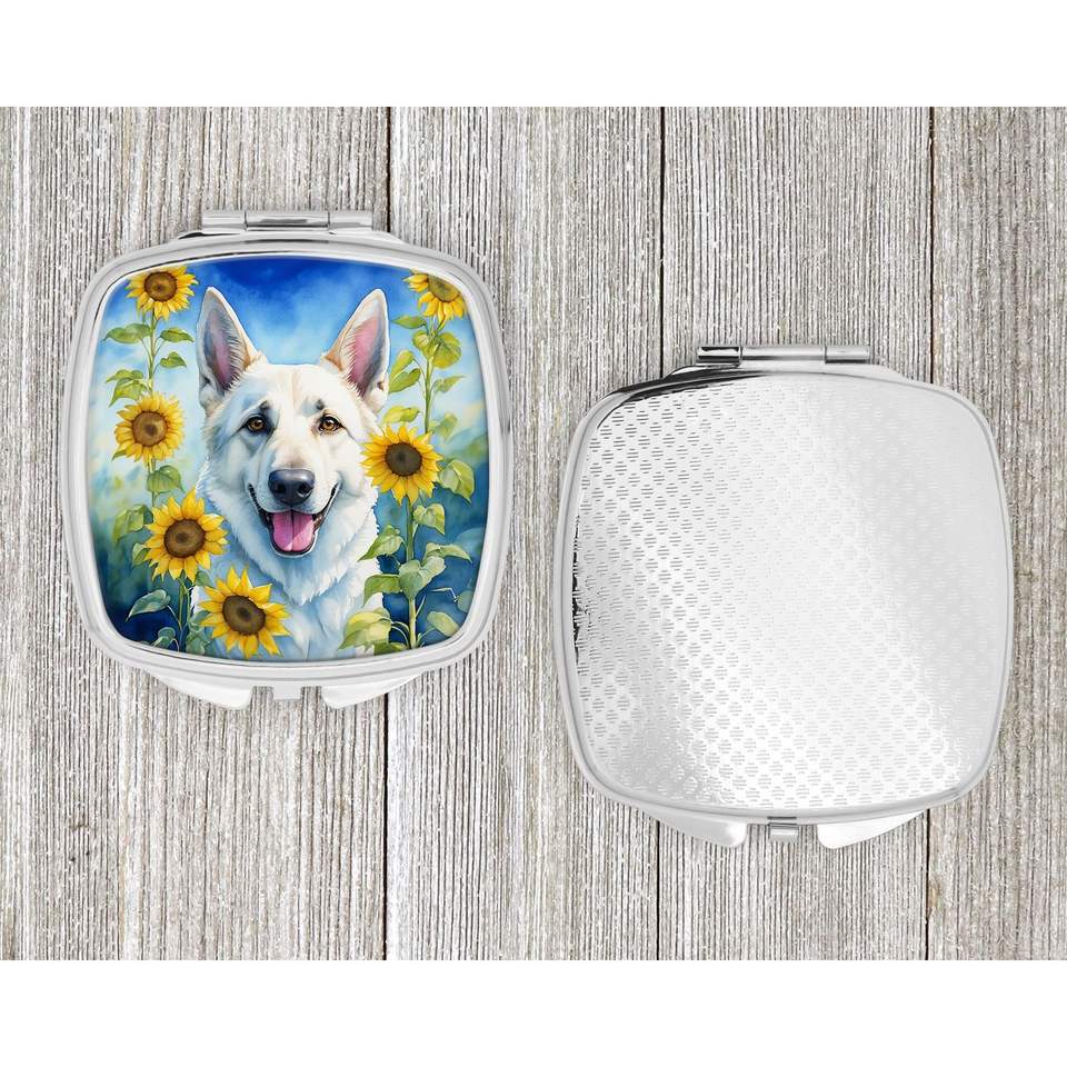 Women Girls' Compact Travel Makeup Mirror White German Shepherd Sunflowers Decorative Folding Handheld Design Pocket Size Gift