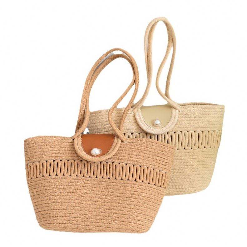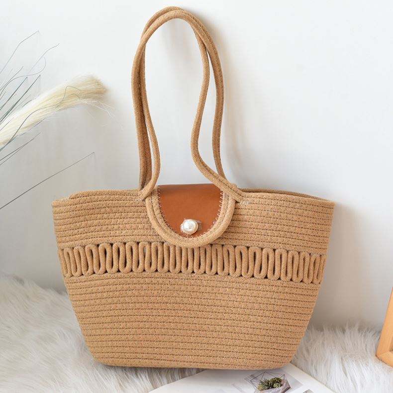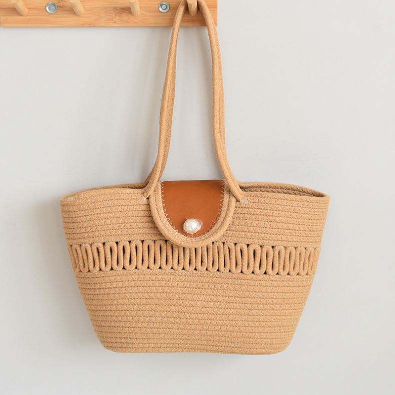 Women Girls' Hollow Cotton Thread Holiday Beach Easy-To-Carry Handle Shopping and Travel Bag