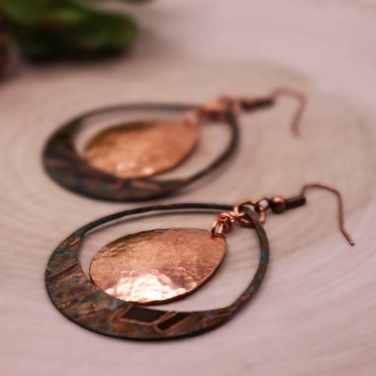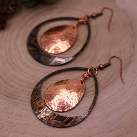 Hammered Copper Women Girls' Unique Classic Earrings Handcrafted Many Patterns Different Shapes Fashion Styles