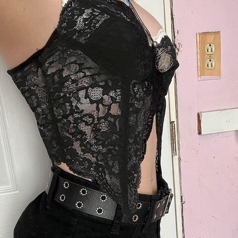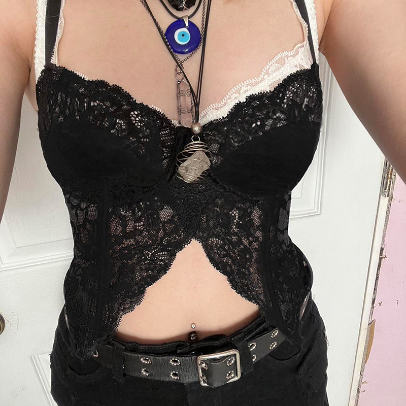 Women Gothic Lace Patchwork Cami Top Slim Fit Cut Out Design Sexy Waist Shaping European American Street Party Top
