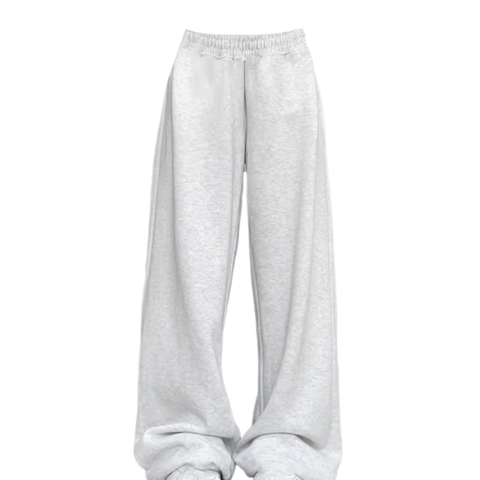Women Gray Winter Wide Leg Sweat Pants Oversized Joggers Streetwear Mid Waist Trousers Flat Front 100% Cotton