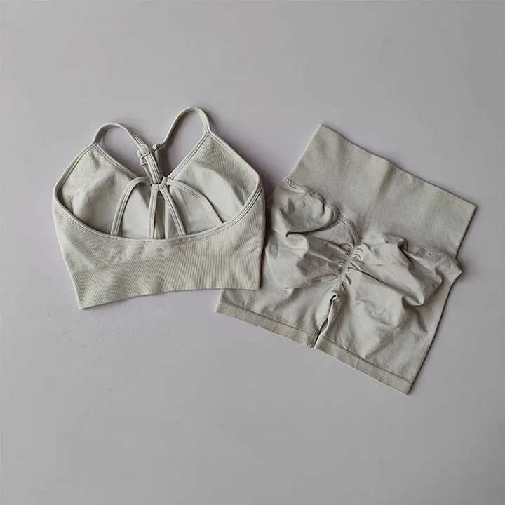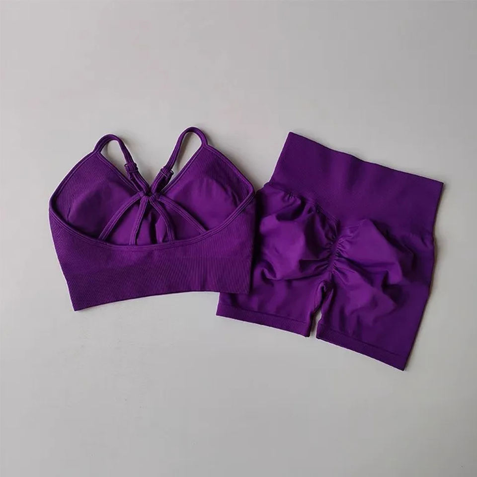 Women Gym Sports Bra And Booty Shorts Set Seamless High Waist Workout Two Piece Fitness Training Yoga Running Outfit Wear