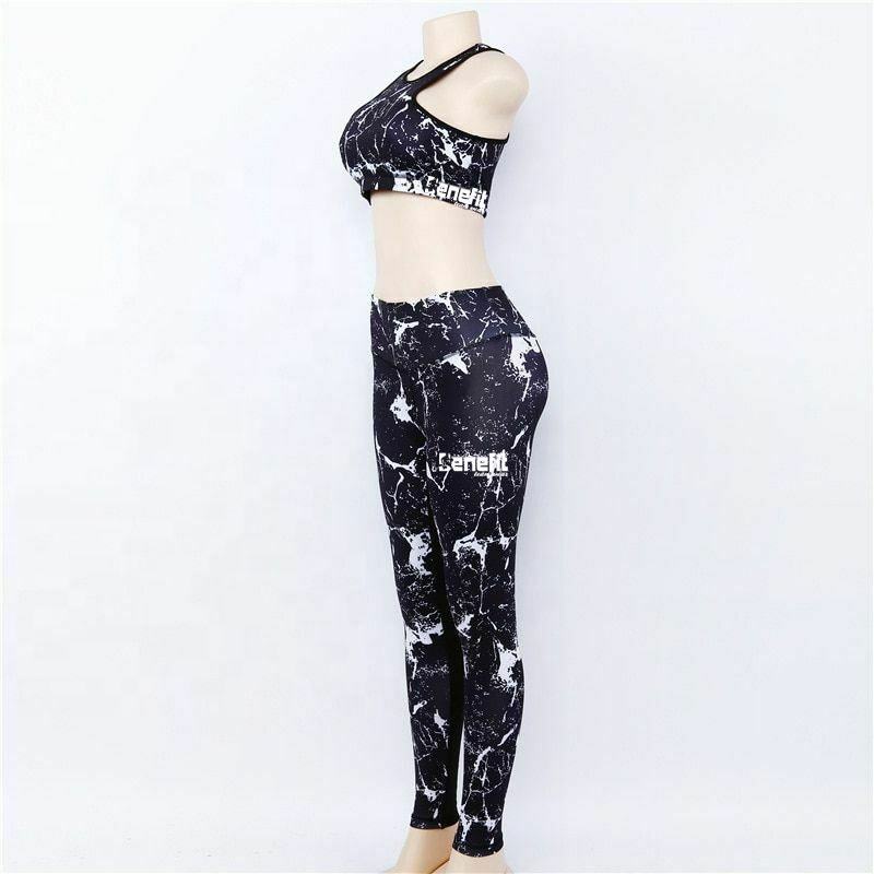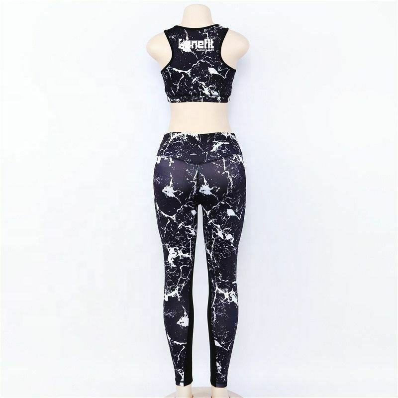 Women Gym Wear Yoga Set Fitness Clothing Marble Print Tracksuit
