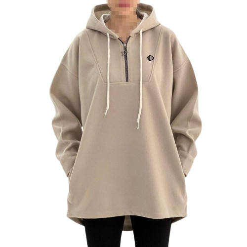 Women Half Zip Fleece Hoodie Oversized Long Length Relaxed Fit Solid Color Streetwear Custom Logo OEM ODM Apparel Manufacturing