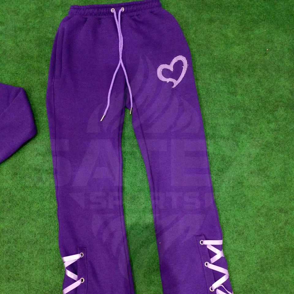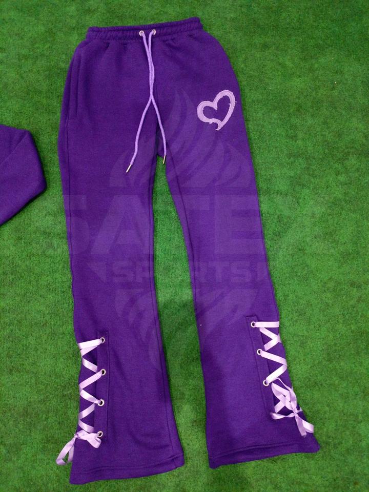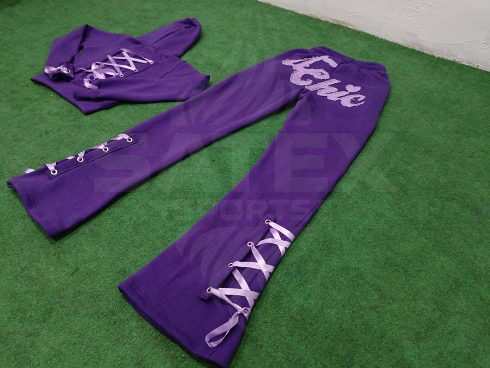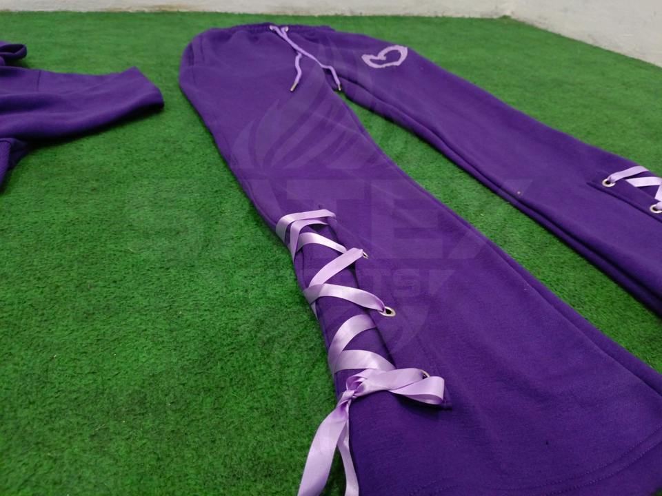 Women Heavyweight French Terry Cotton Casual Elastic Waistband Track Pant with Lace Winter Custom Logo