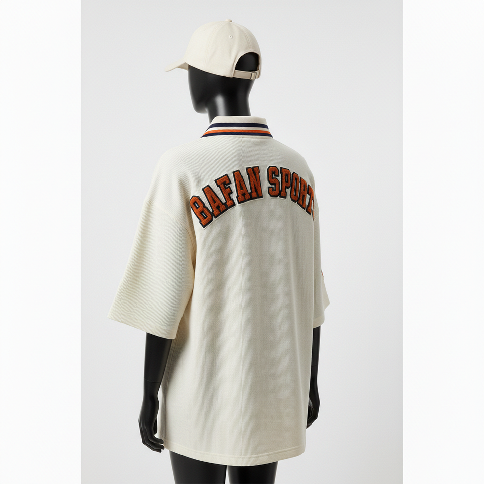 Women High Quality Cotton Waffle Polo Shirt GSM Relaxed Fit Cream Color With Applique Embroidery Logo Cotton Women Polo Shirts