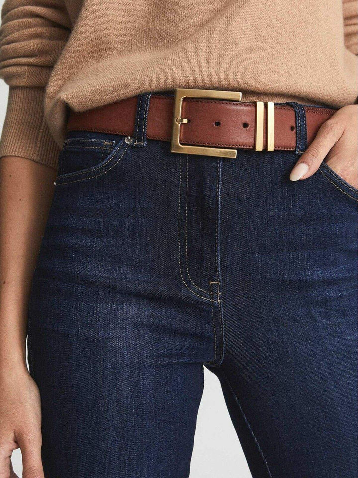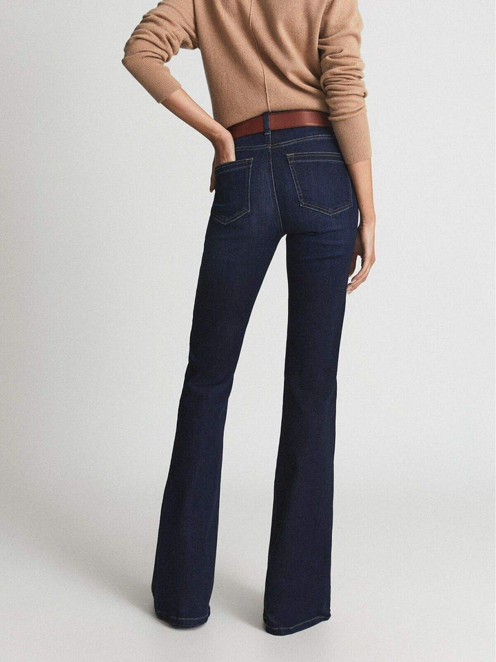 Women High Waist Ripped Patch Skinny Bell Bottom Flare Leg Denim Jeans 100% Cotton High Performance Casual Leopard Belt