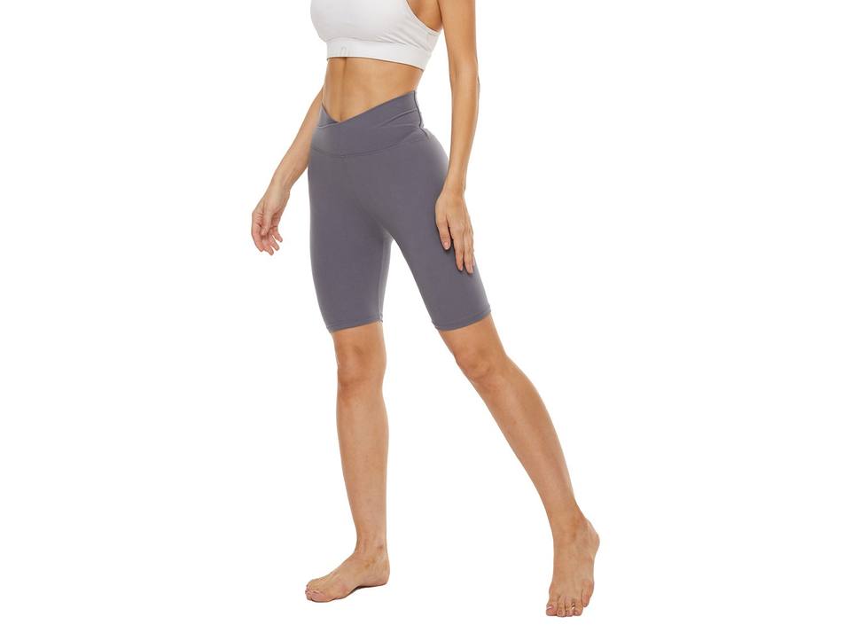 Women High Waist V Shape Yoga Shorts Stretchy Fitness Biker Shorts Grey