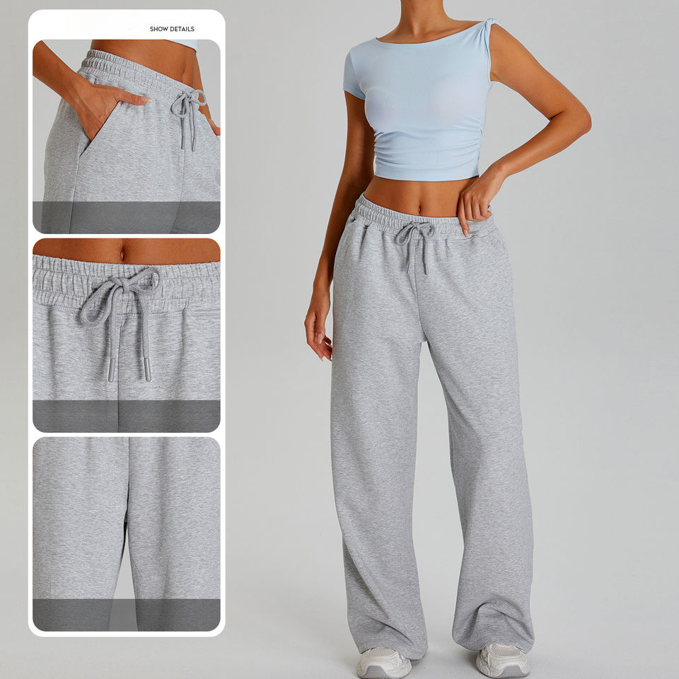 Women High Waisted Lounge Travel Casual Sweat Pants with Pockets Drawstring Wide Leg Sweatpants